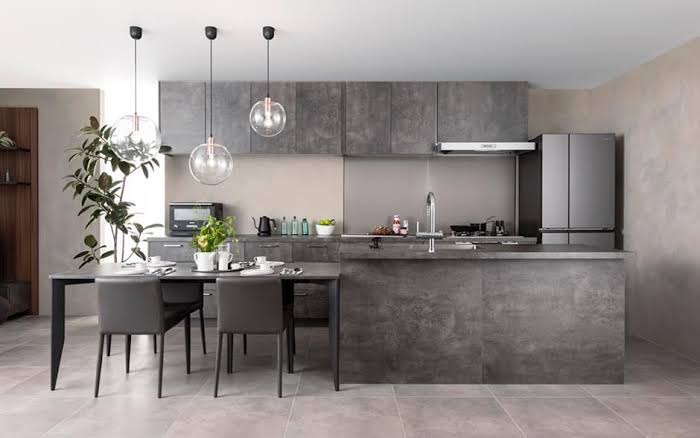 キッチンは、家具のようにオシャレなGRAFTEKTのべトングレーを採用。