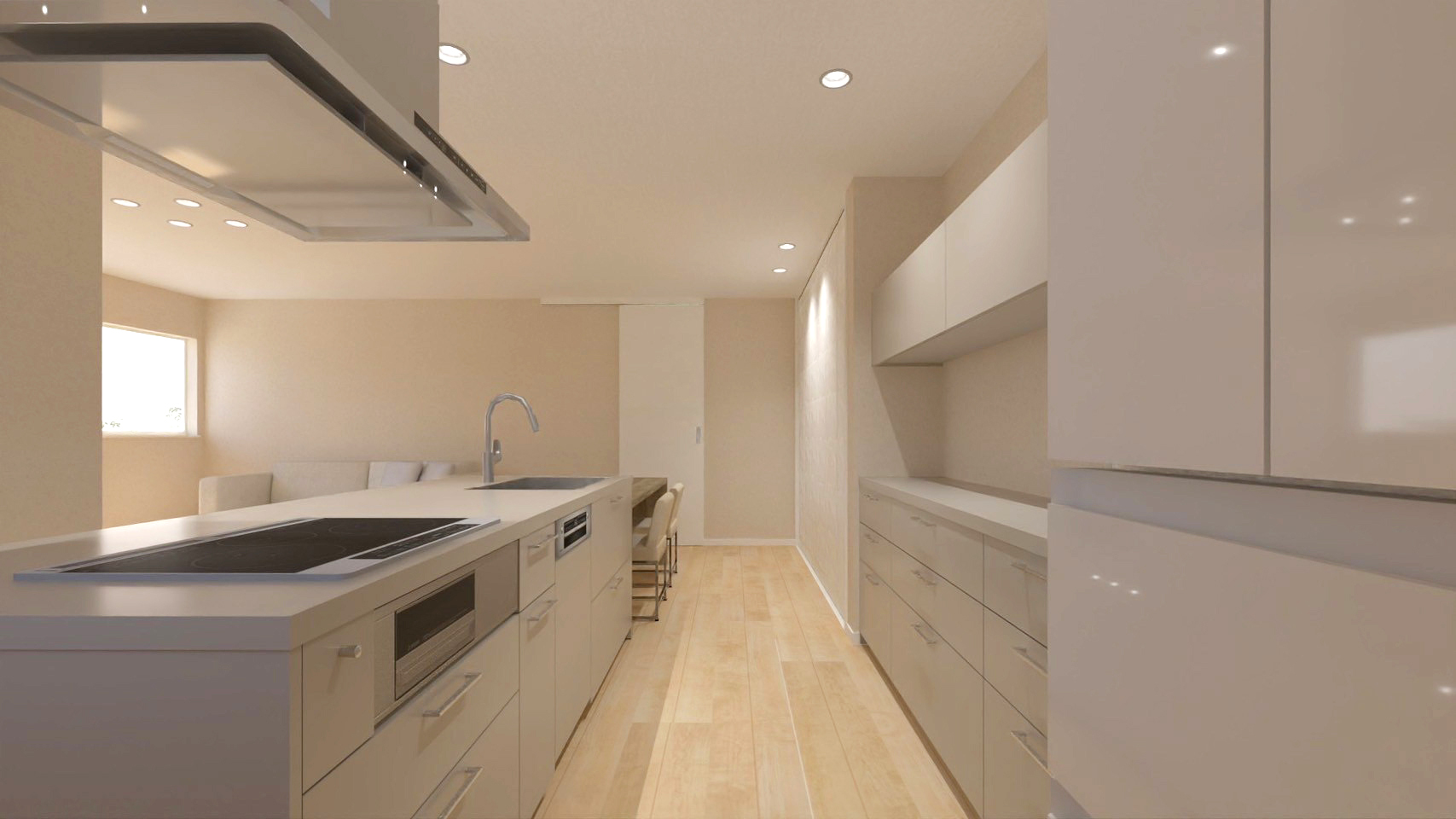 キッチンを囲み、ご家族みんなで料理の時間を共有していただけるので、家族で一緒に調理をしたい方や、ホームパーティーが好きな方におすすめのキッチンです。小さいお子様がおられる家庭でも、調理をしながら様子を確認できるので安心です。