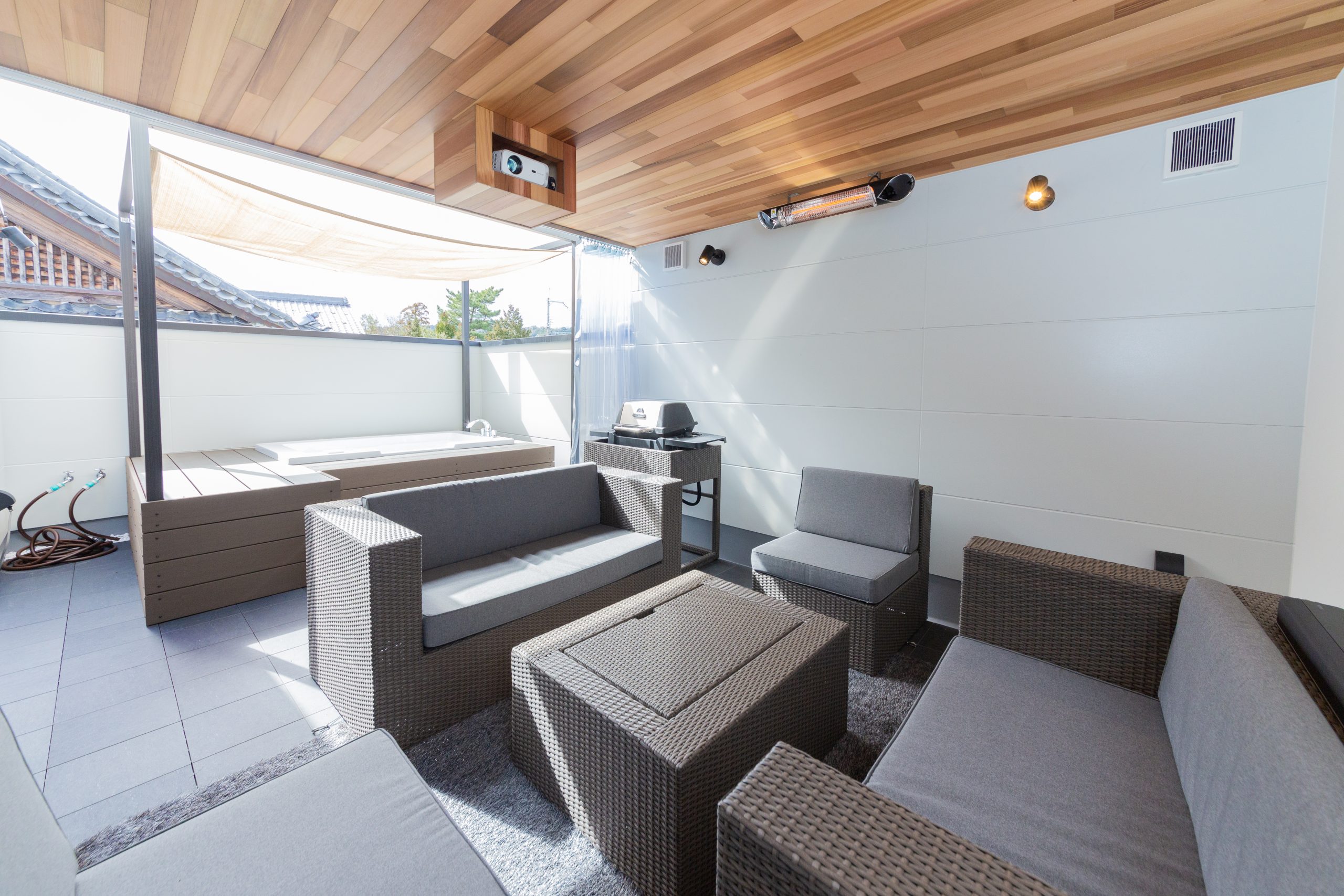 天候や季節に左右されない屋根付きのアウトドア・テラスがあります。