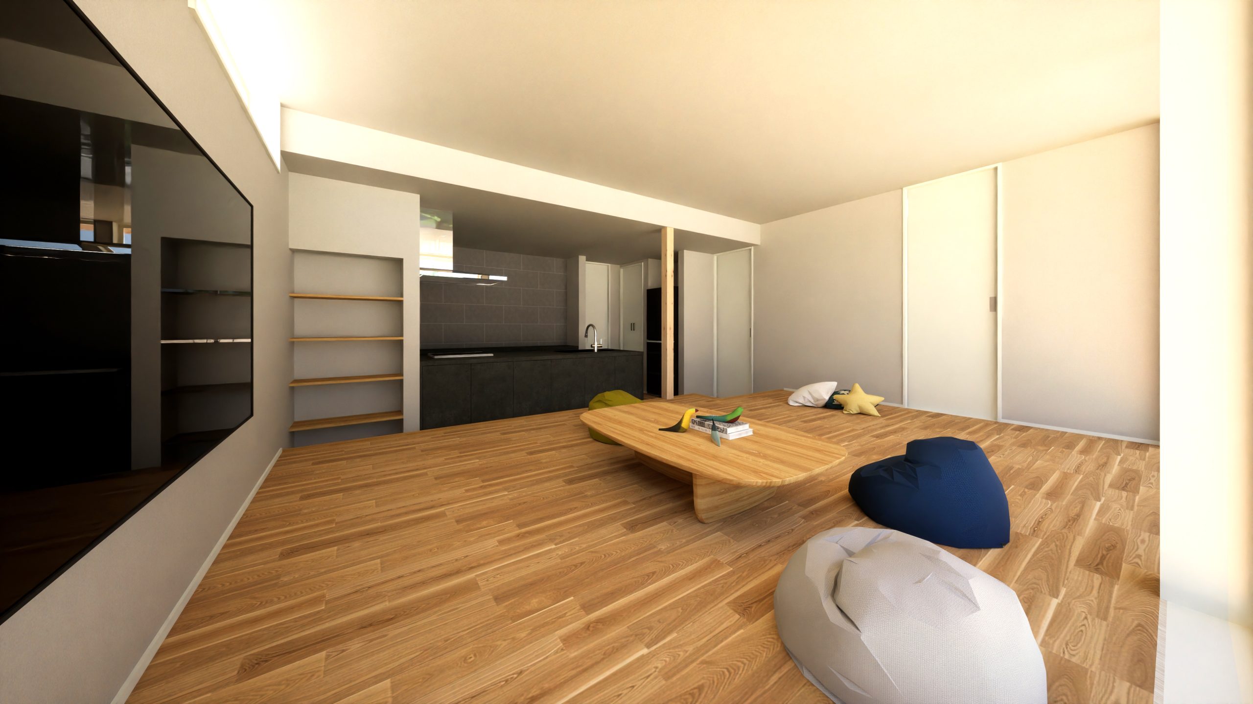 30坪の平屋で、家族にちょうどいい3LDKの間取り。ダイニングスペースには座卓を配置し、ゆったりとくつろげる和やかな空間を実現しました。