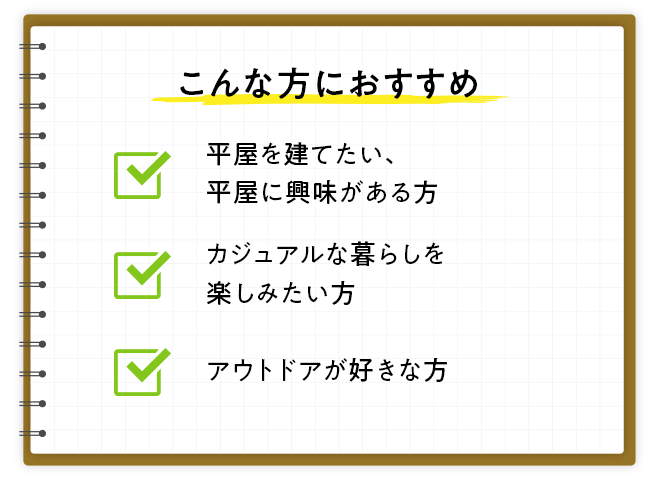 小上がりのダイニングでくつろぎ、お風呂へ直行できる勝手口など便利さも満載。平屋でもプライベートとパブリックをしっかり分けた間取りで、快適な暮らしを叶えます。