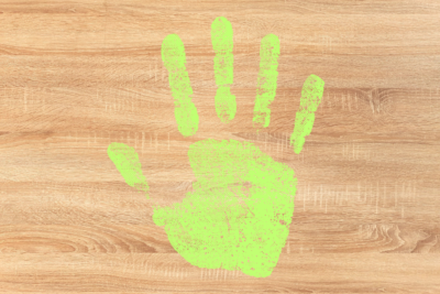 木に手形を付けて頂きます。ご家族で体験できます。