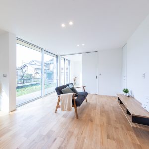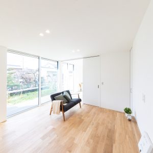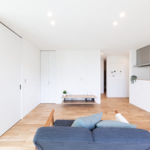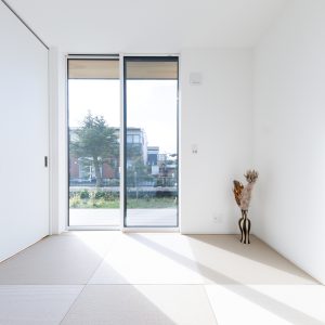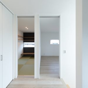 リビングからフラットに続く和室は扉で仕切る事ができ