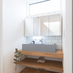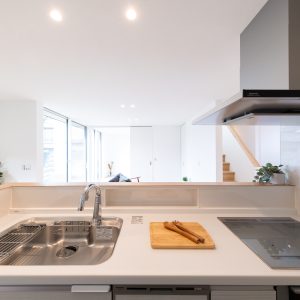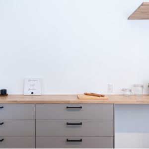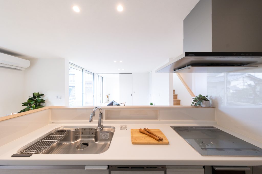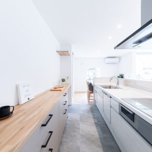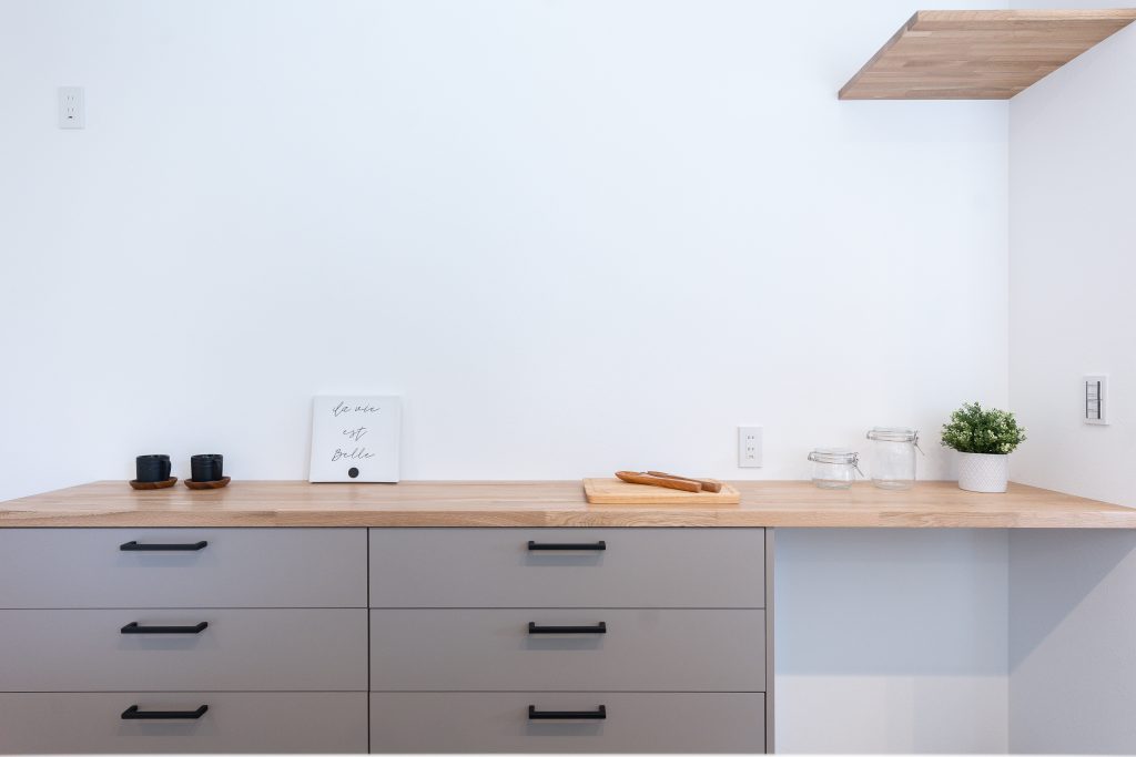 カップボードにはグラフテクトのアッシュベージュを使用。