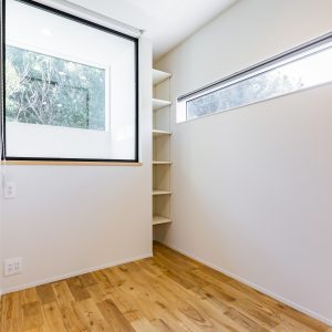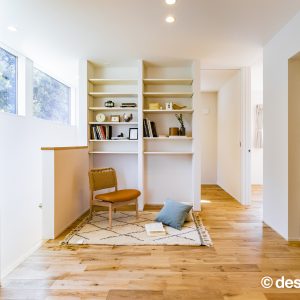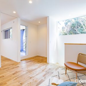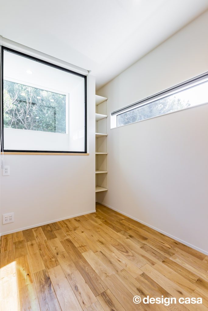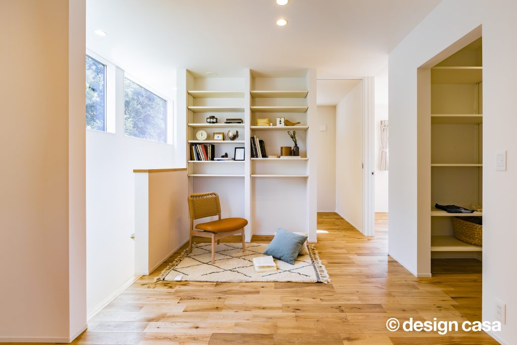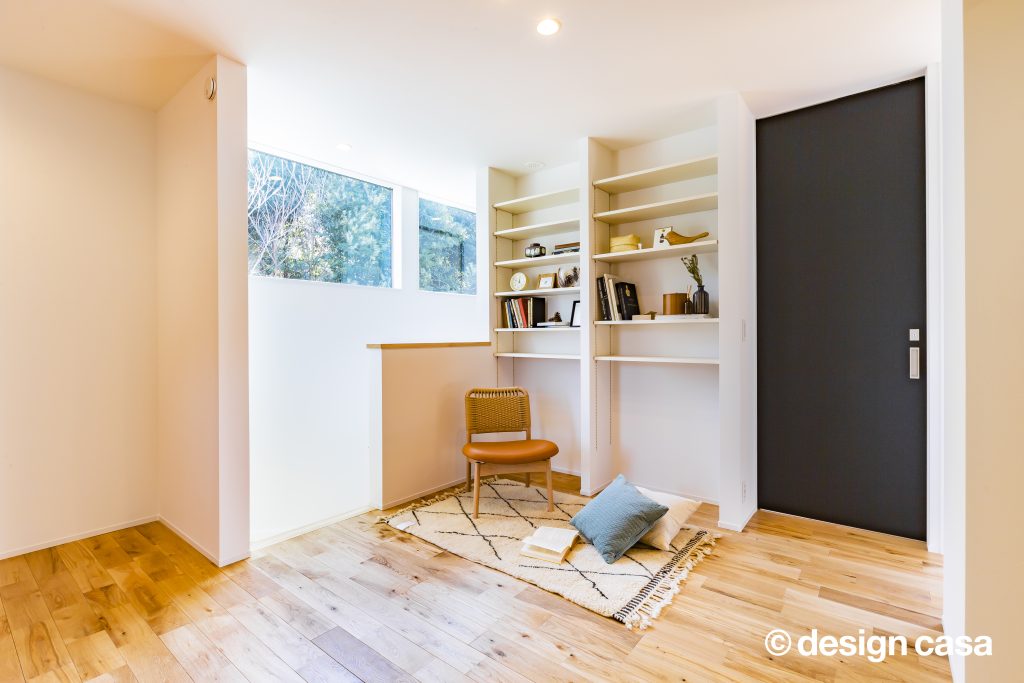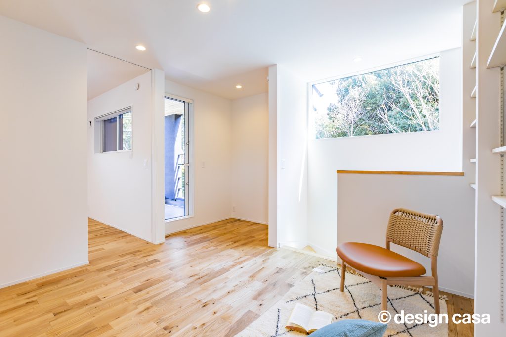 東側の景観を取り込めるように、1階と合わせて、2階には書斎、広いフリースペースを南東側に配置することで家族にとっての遊び場空間を設けました。
