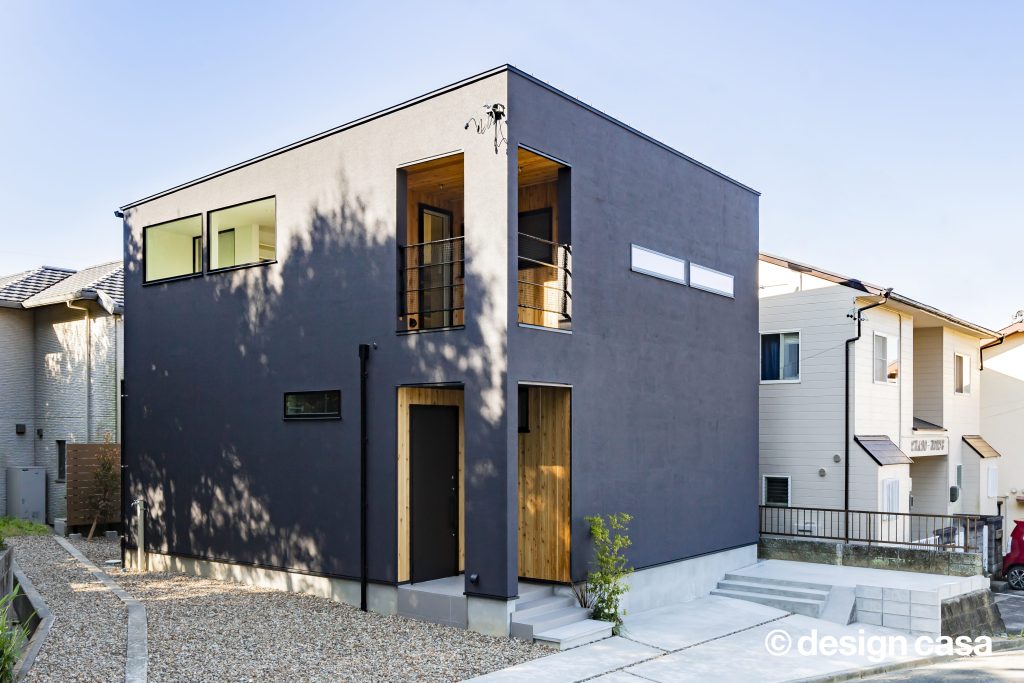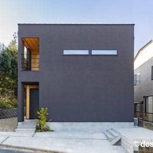 道路が北側にあり、敷地との⾼低差があることで⾞の駐⾞計画やアクセスが限定され、また、⻄、南側隣地に建つ住居との距離が近い為、