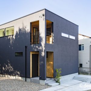 明るさが確保できるようにリビングを出来る限り北側によせ、東側に向けて開くように南東を⼤きくあけるように配置しました。
