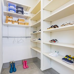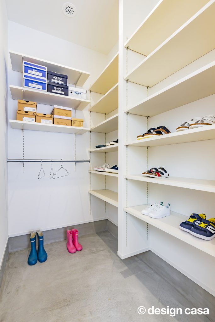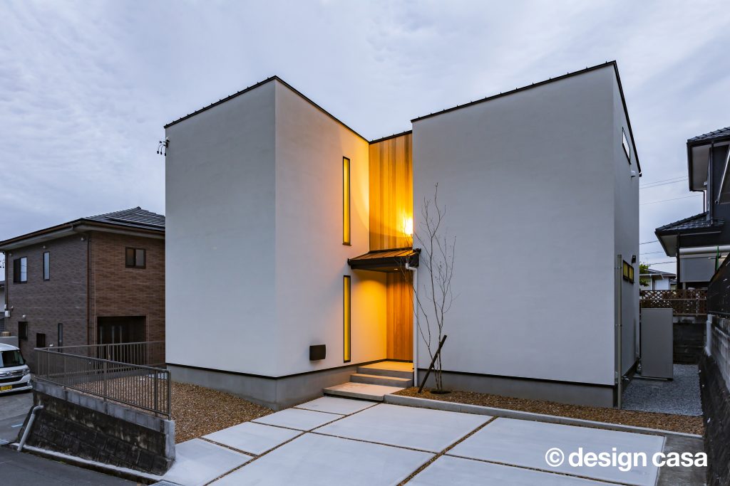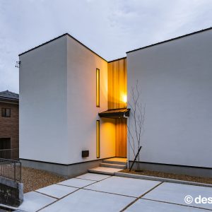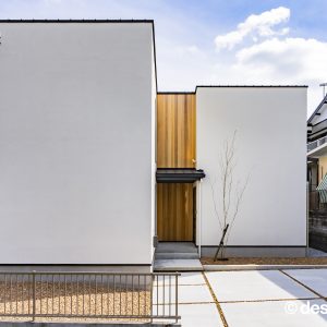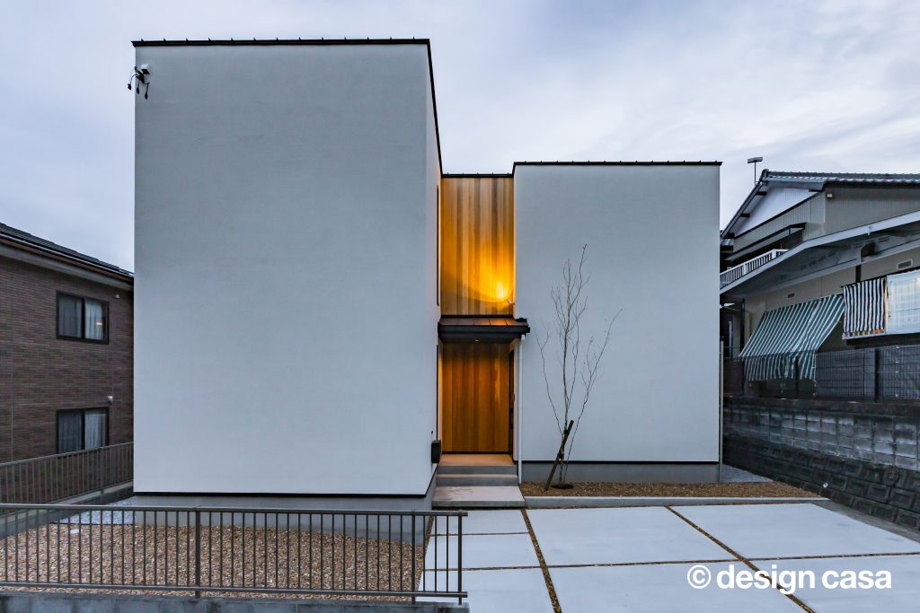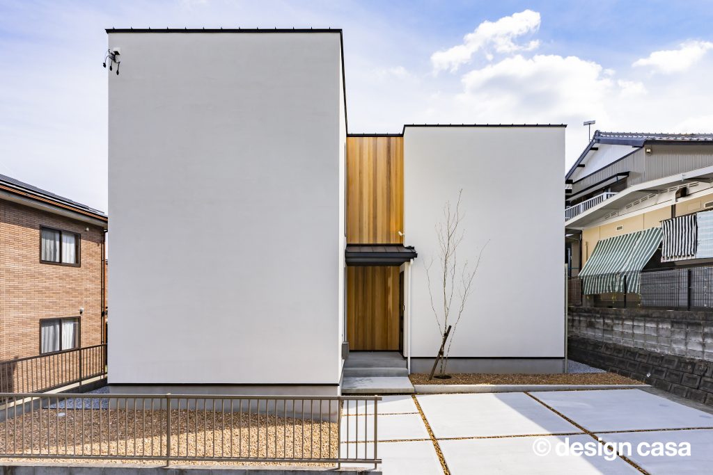 また、共通BOXの中央に配置した畳スペースは家族にとってゆったりと過ごすフリースペースとして利⽤しながらも、お客様、友⼈の来客⽤として、LDKを抜けることなく、⽞関から直接⼊れる動線を確保する事で、家族のプライバシーは確保できます。外観からは内部の様⼦はわからないが、イメージする3つの『BOX』を外観に表現しながら、全体のテーマと融合させる計画を⽬指しました。