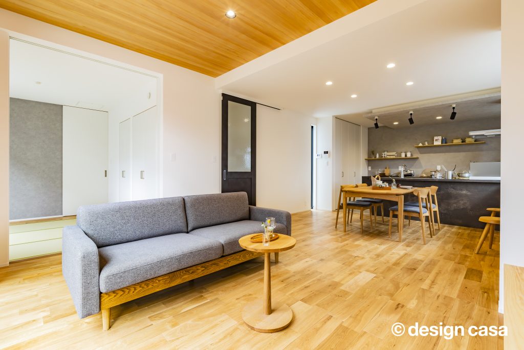 家族や来客時などの寛ぐスペースとプライバシーの部分を分けています。