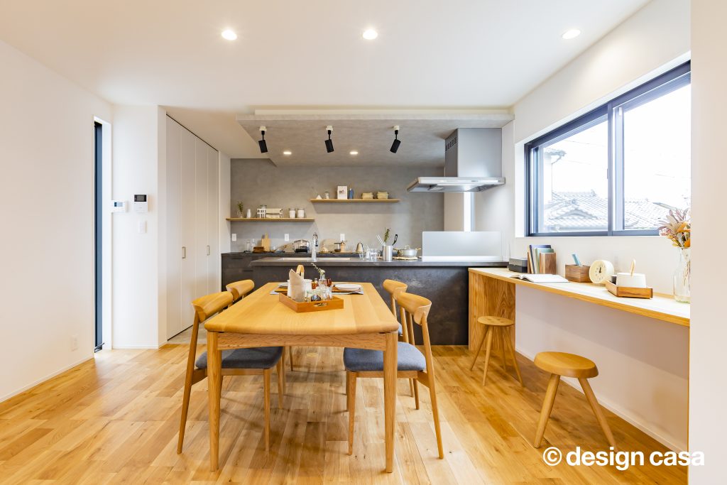 家族が仲良く料理を楽しめる広々キッチンや、開放感を感じるLDKと畳スペースが見どころのお家です。