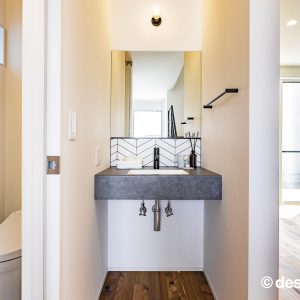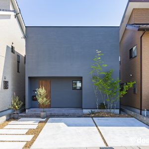 北側道路以外は周囲の家から⾒られる環境。お施主様は1階リビングをご希望でしたが、周囲の環境から考えると、1階にリビングがあっても開放感がでないご提案になるお話をさせていただき、2階にリビングを配置してプライベート感を作りつつ、⾃然に明るい空間にできる良さもヒアリングを通して感じてもらえたので、ゾーニング計画を決めていきながら⽅向性がまとまっていきました。