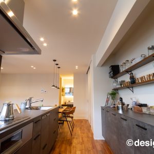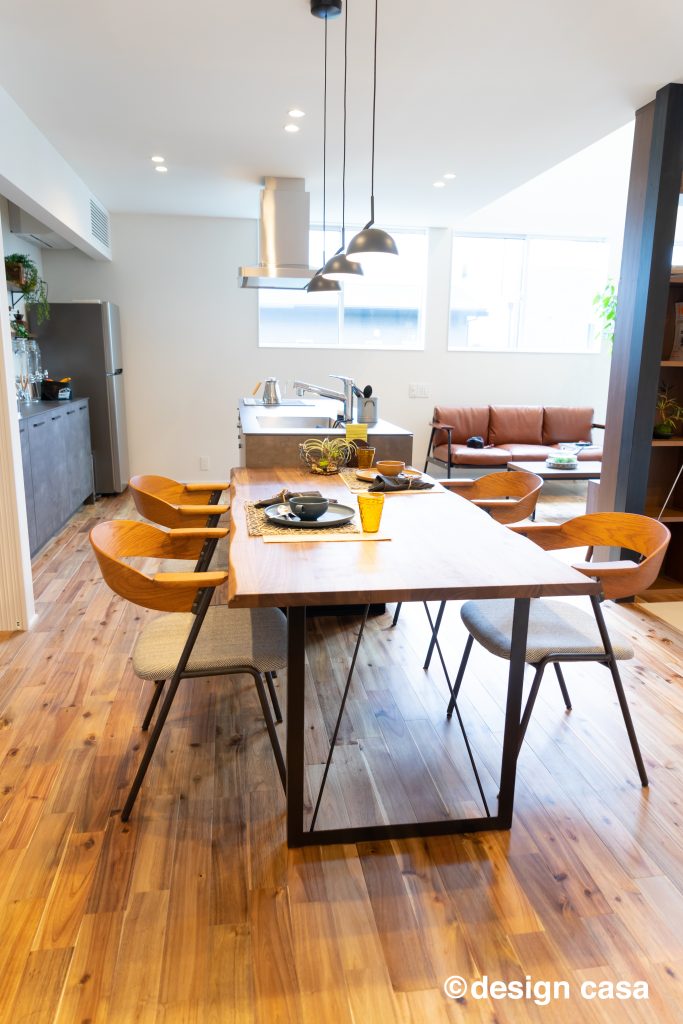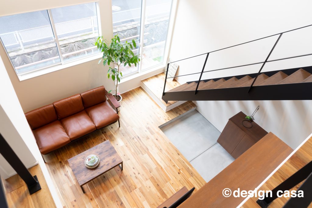 家に籠るをコンセプトに、外からの視線を感じないよう、 間取りや窓の位置を計画し、正面は閉じながらも 室内には日差しも明るさも入る仕組み。