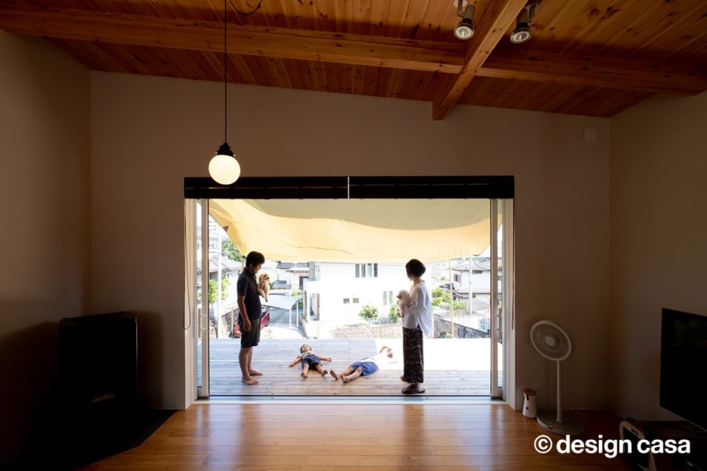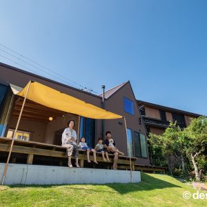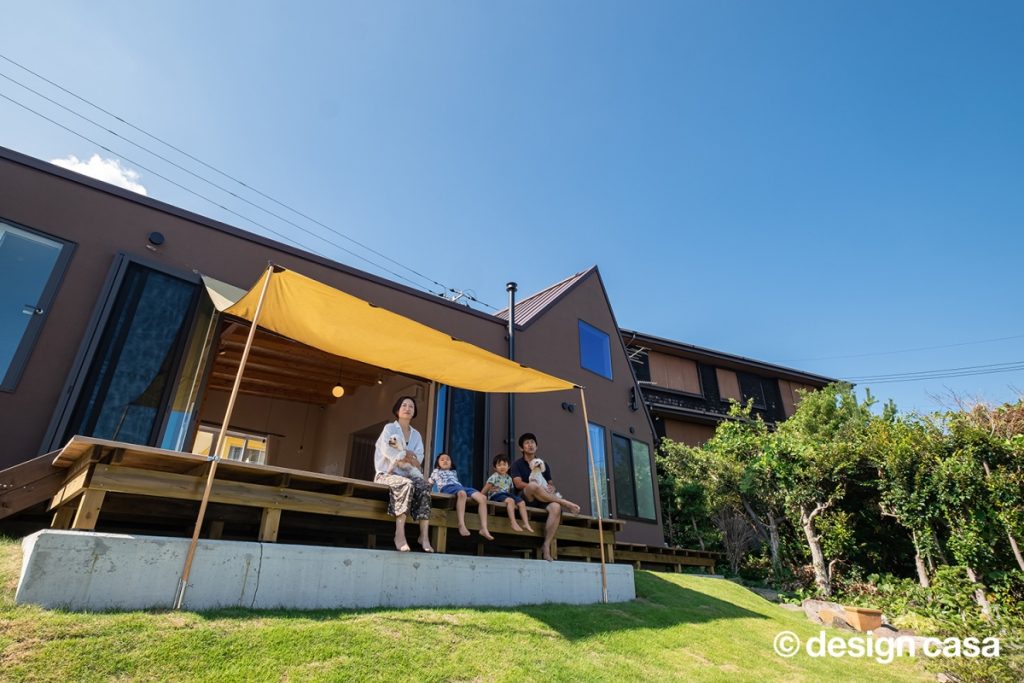 高台から海を望む、背景には富士山がそびえる敷地。まるで景色の中にいるように、それぞれの眺望をダイレクトに感じながら暮らす家をご提案しました。