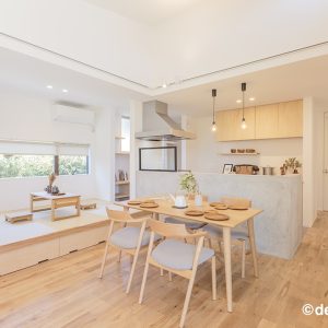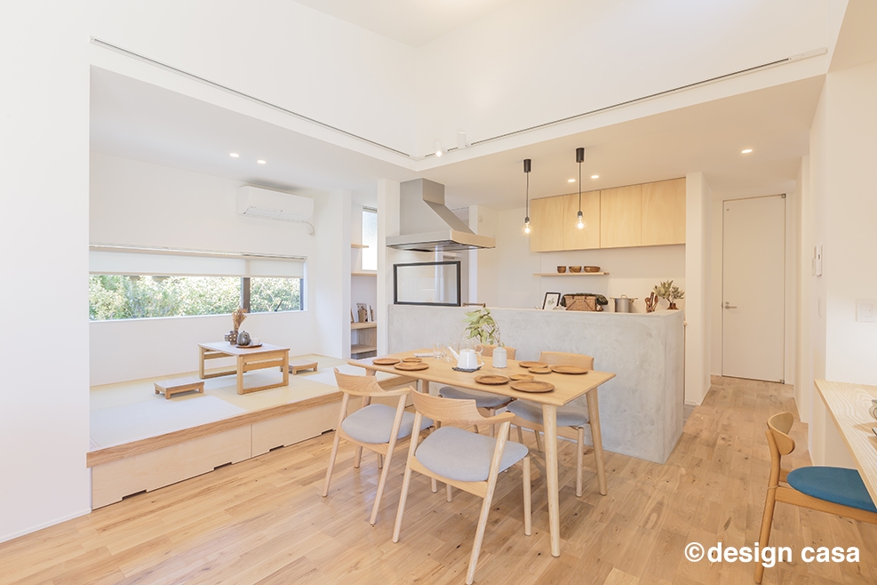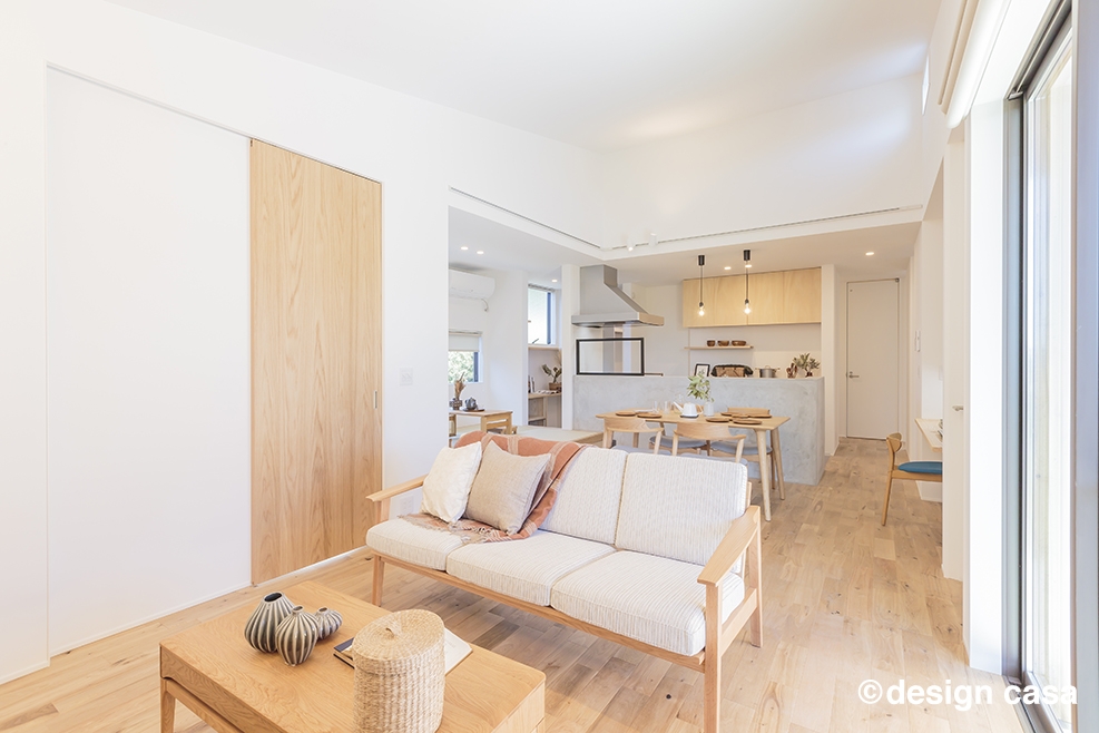 段差のない平家にする事で、拡がりのある居住空間と、家族みんなの暮らしやすさを両立。快適で居心地の良い住まいを実現しています。