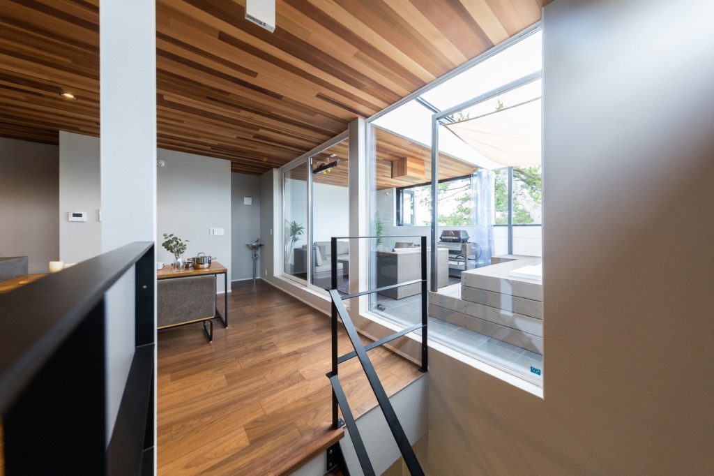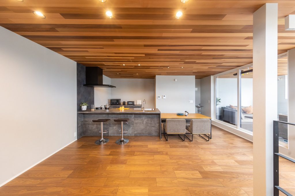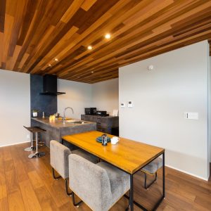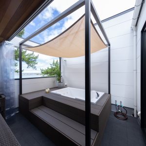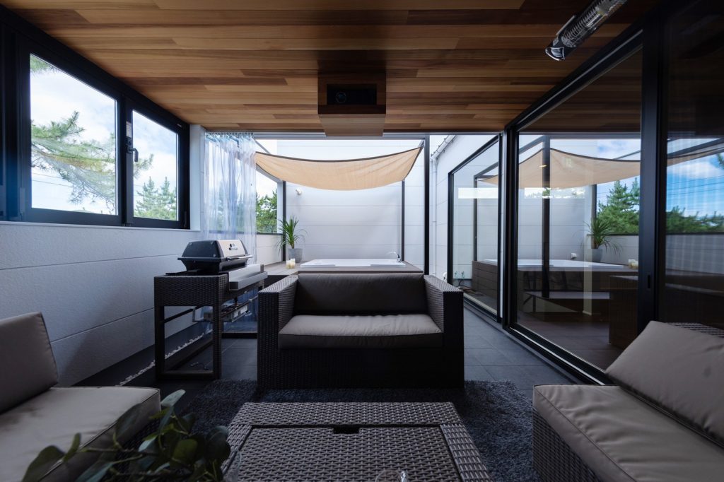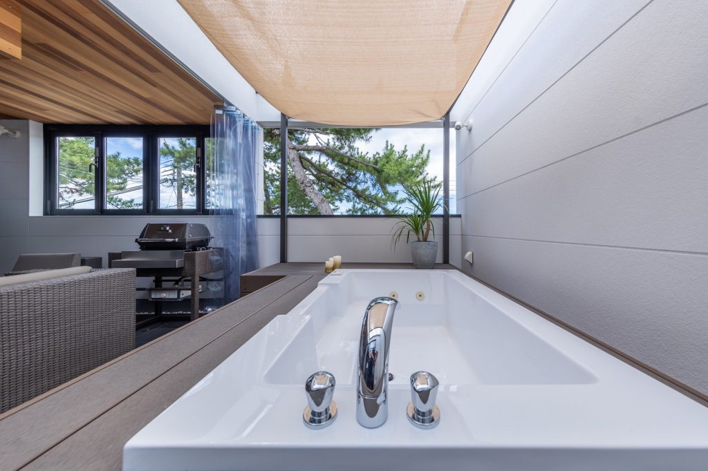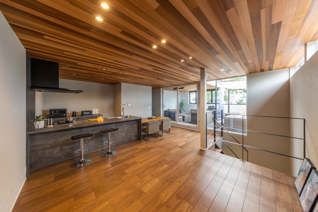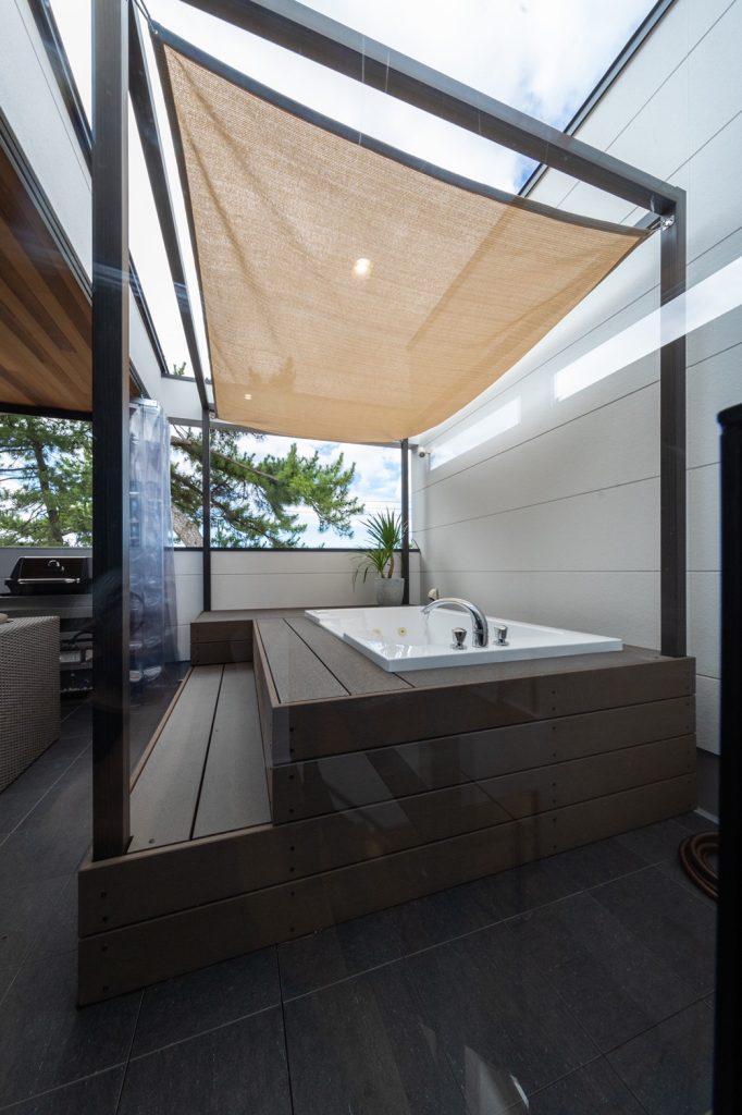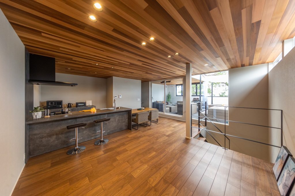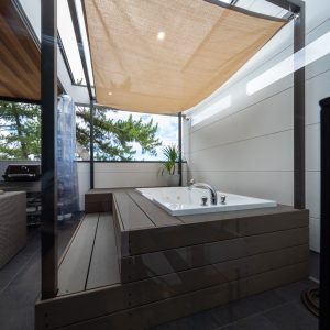 外観からインテリアにいたるまで、デザイン×遊びゴコロに満ち溢れ、 コストパフォーマンスも兼ね備えた規格外住宅。 天候や季節に左右されない屋根付きのアウトドア・テラスがあります。 本格的なBBQが楽しめるガスグリルやジェットバスに浸かりながら、 映画やドラマが鑑賞できるスカイバスシアターも標準装備。 そして親の目も届く子供たちの居場所として、 光の中で存分に遊んだり学んだりできる住宅に。