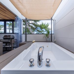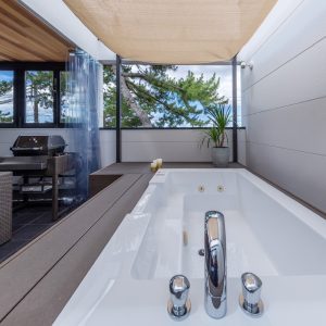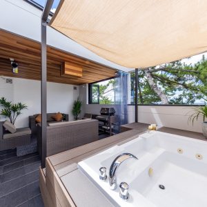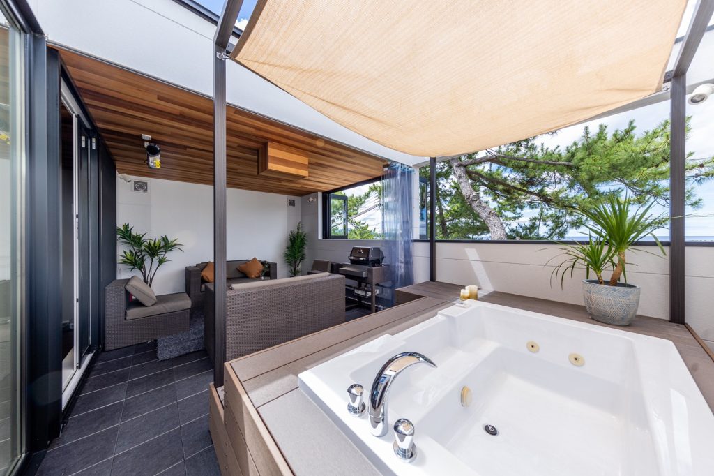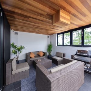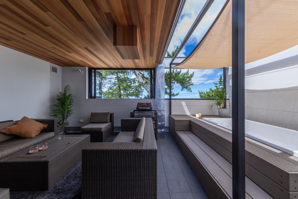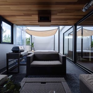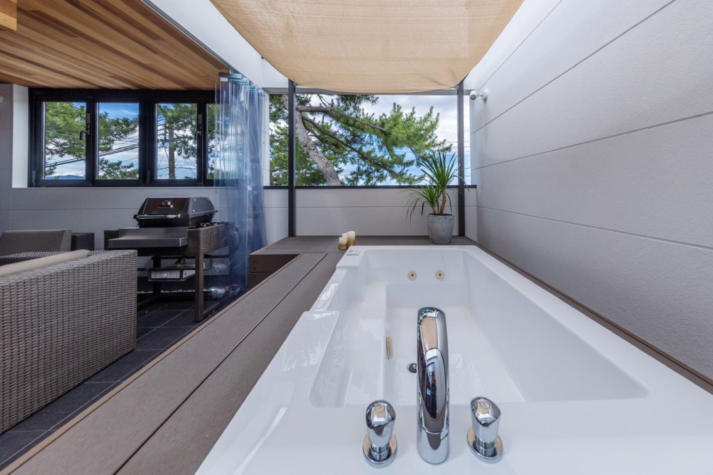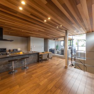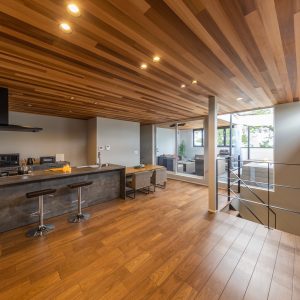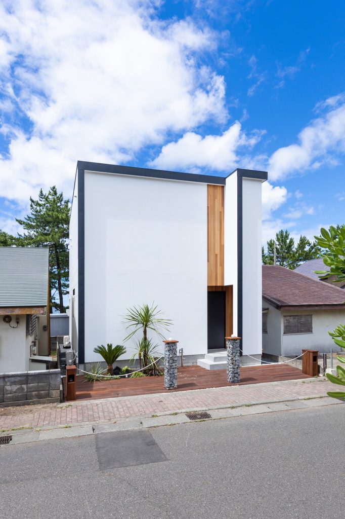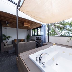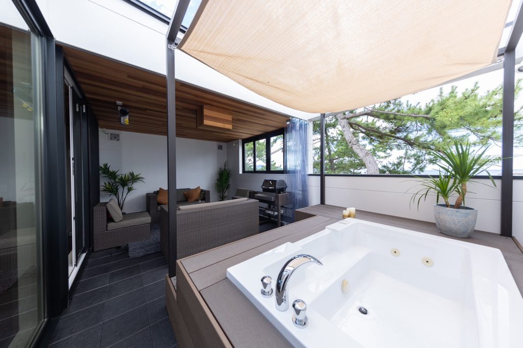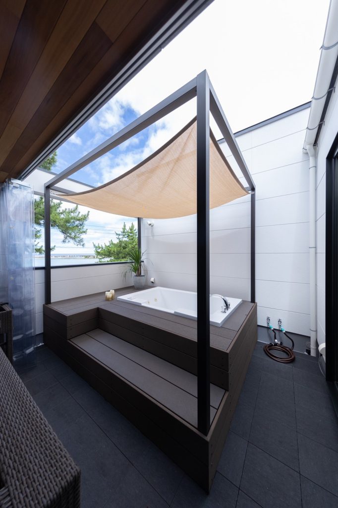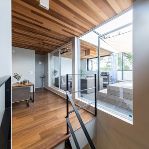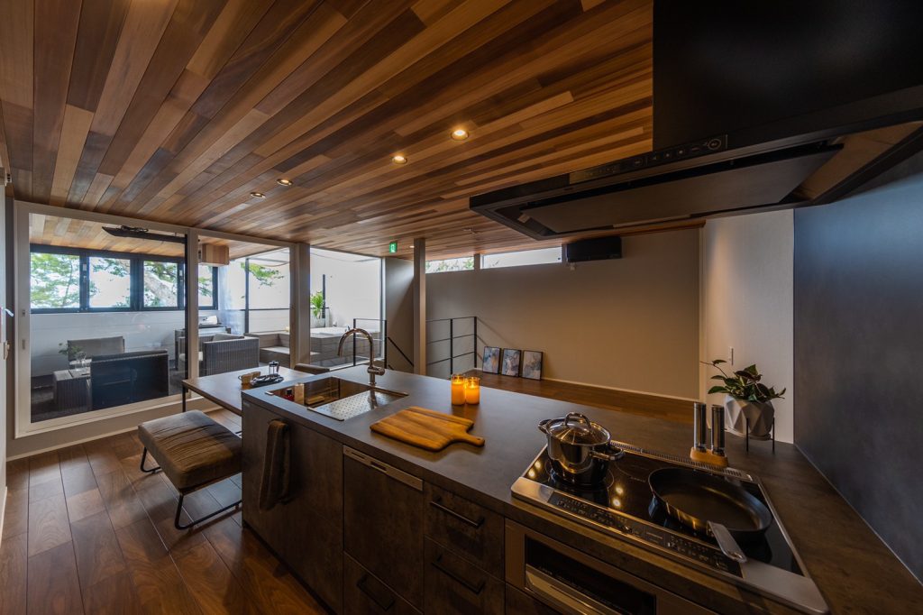 外観からインテリアにいたるまで、デザイン×遊びゴコロに満ち溢れ、 コストパフォーマンスも兼ね備えた規格外住宅。 天候や季節に左右されない屋根付きのアウトドア・テラスがあります。 本格的なBBQが楽しめるガスグリルやジェットバスに浸かりながら、 映画やドラマが鑑賞できるスカイバスシアターも標準装備。 そして親の目も届く子供たちの居場所として、 光の中で存分に遊んだり学んだりできる住宅に。