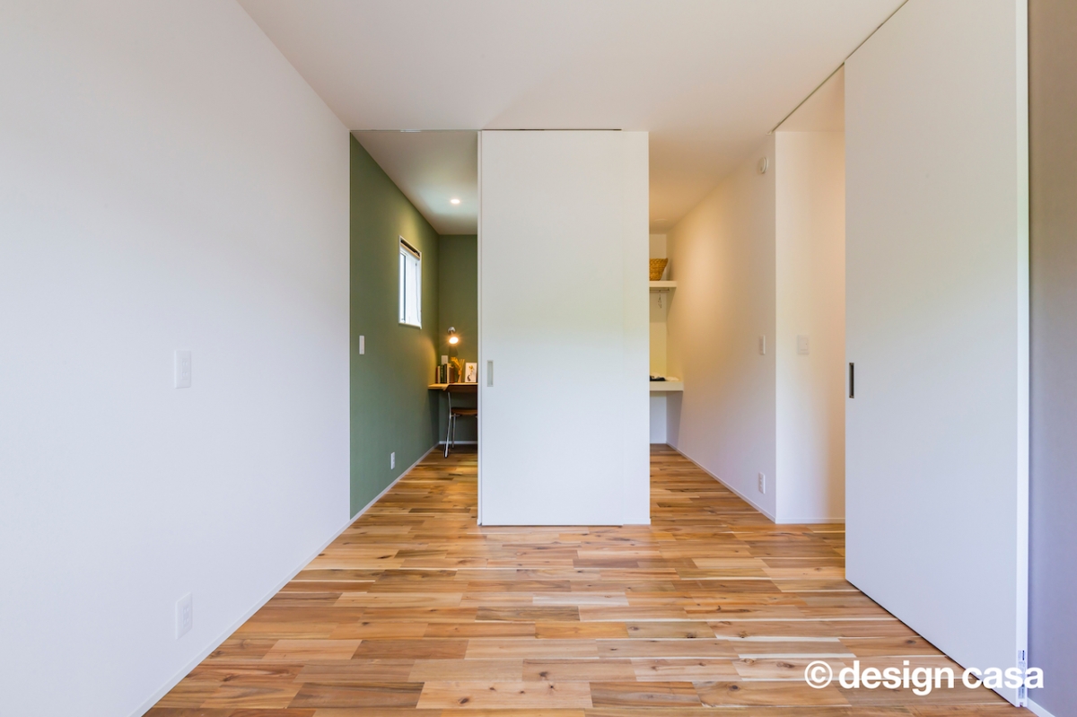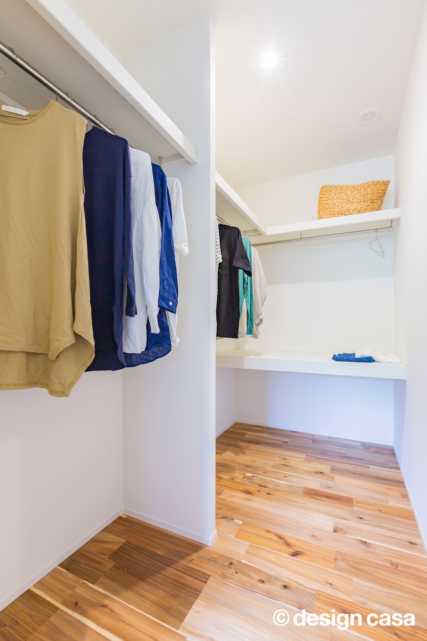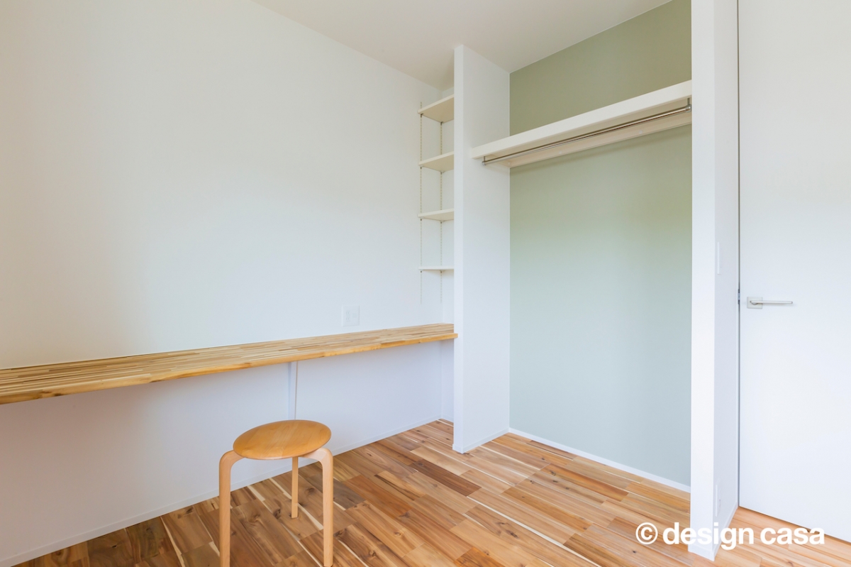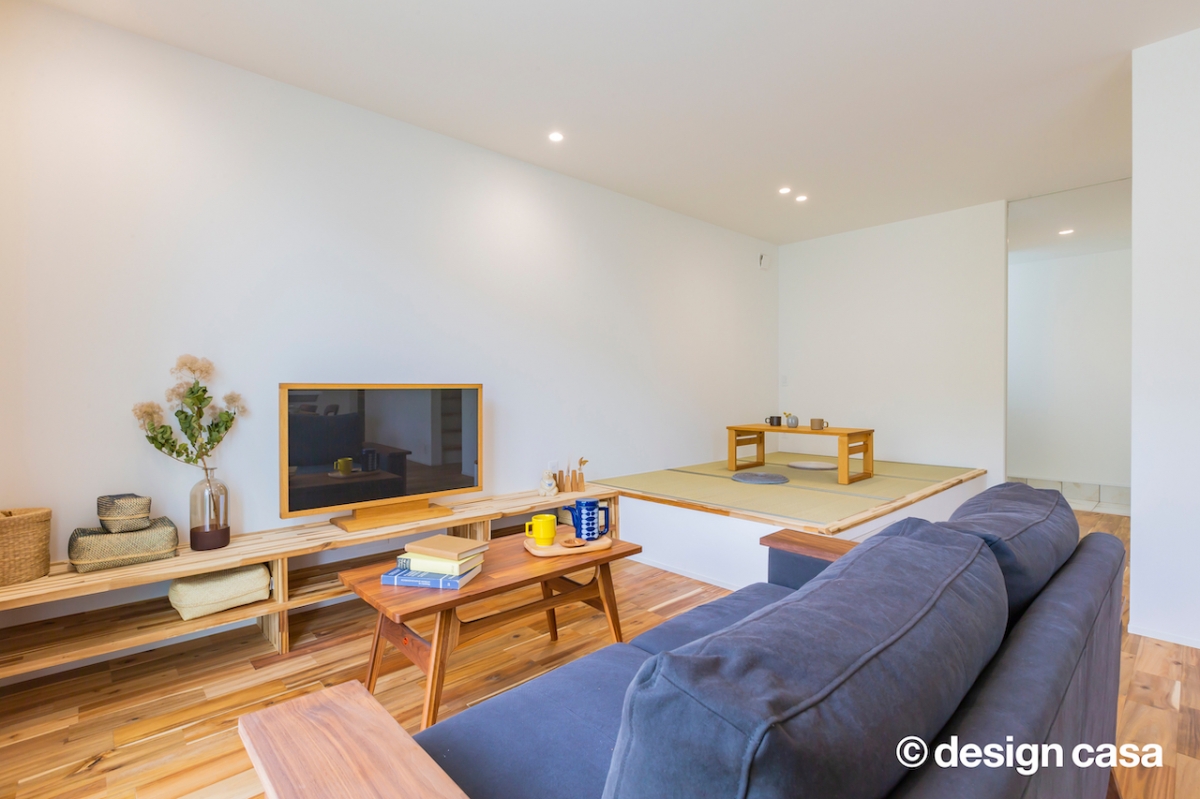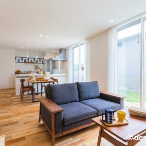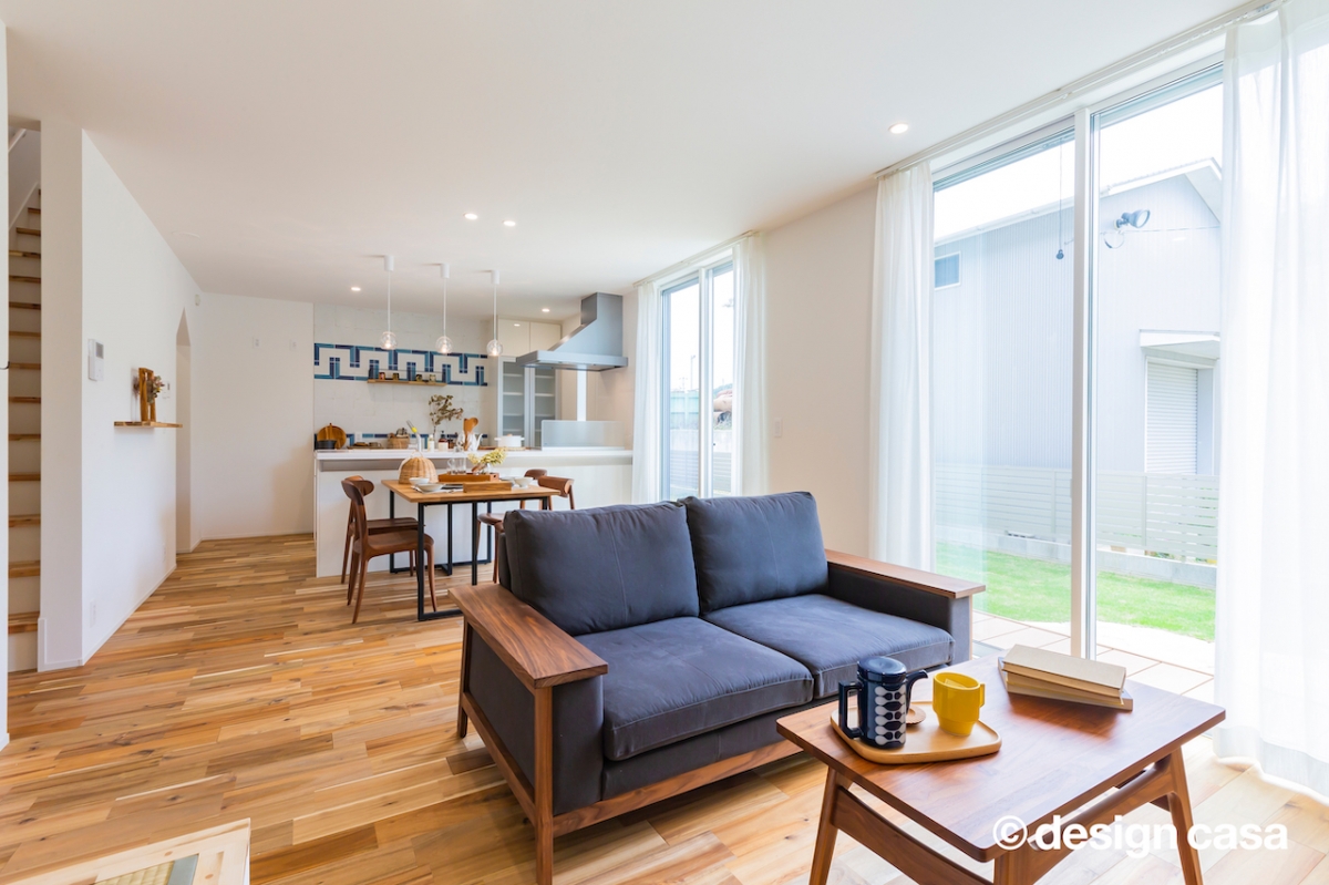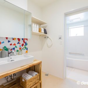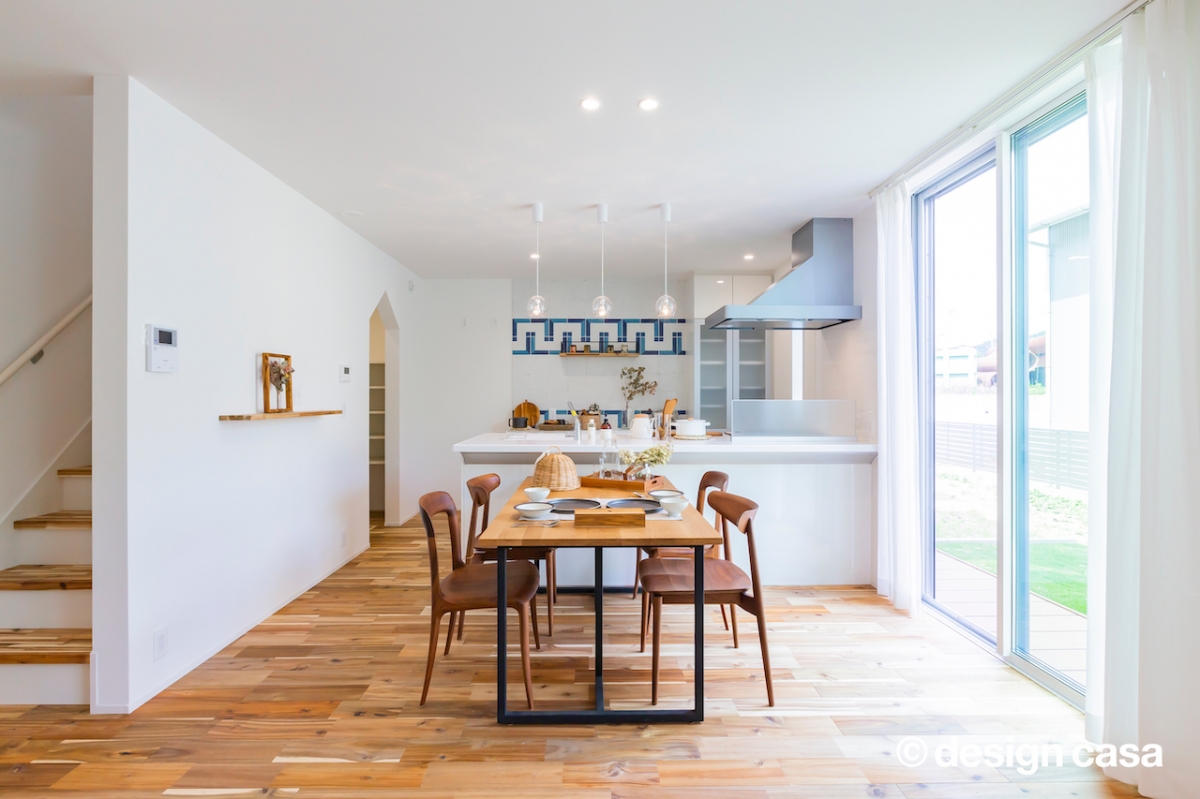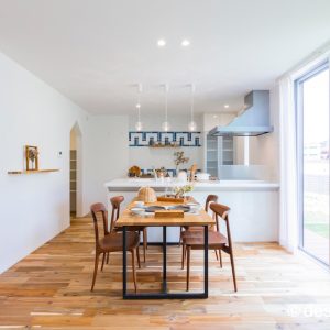 テーマは「毎日をちょっぴりていねいに暮らす家」。 仲良しご夫妻が、夫婦の時間だけでなく一人の充実した時間も程よい距離感で過ごせる間取りを提案しました。 プライベートなものは見せない工夫が凝らされ、 タイルやアクセントクロスの使い方もおしゃれな、シンプルながらも洗練されたお家です。