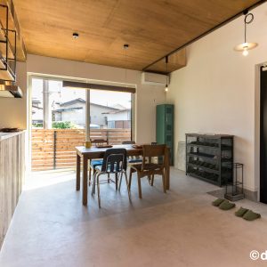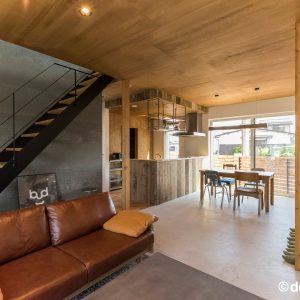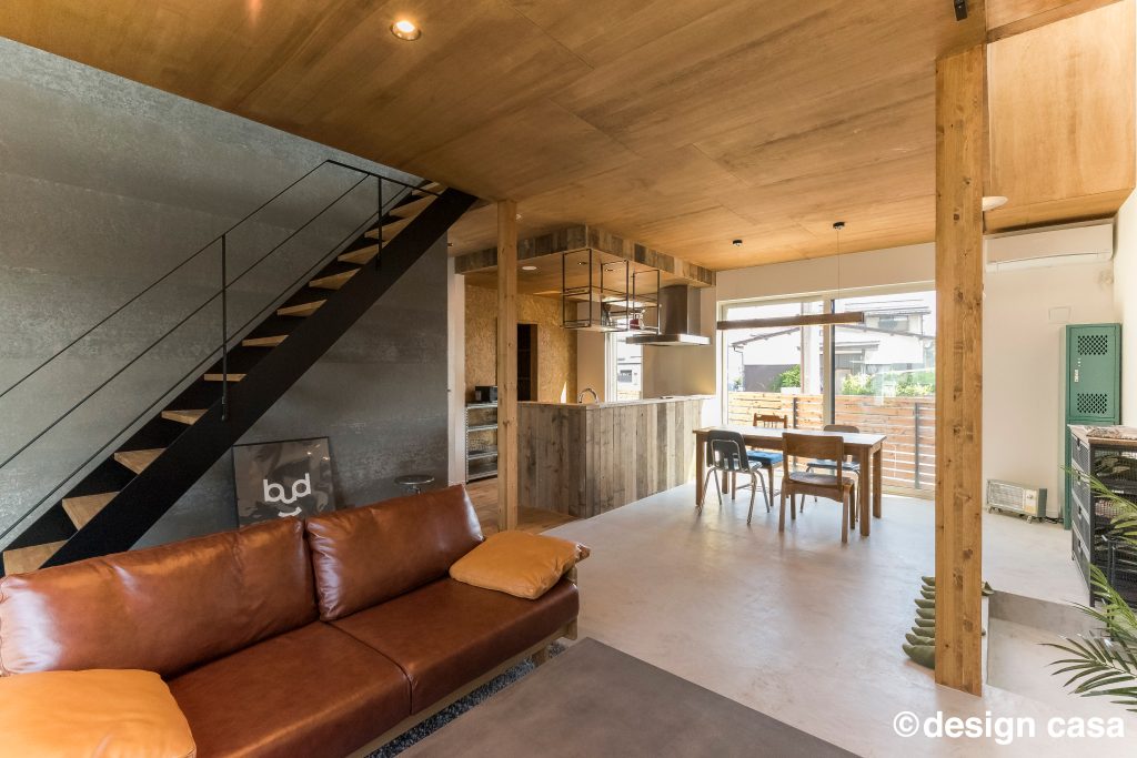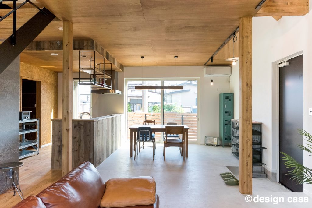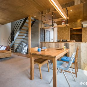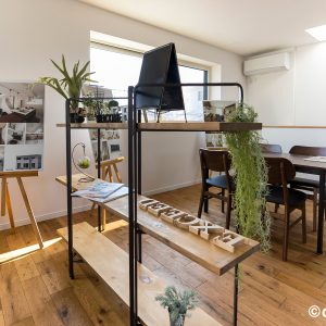 個室の無い空間で好きなインダストリアル家具を並べて、自由に間仕切る。
