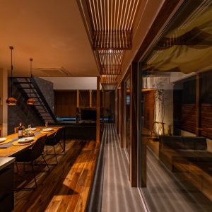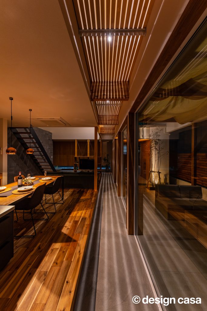 屋外を屋内へと引き寄せ、 外と中に一体感を持たせると共に屋内の温熱環境を整える。