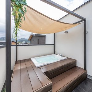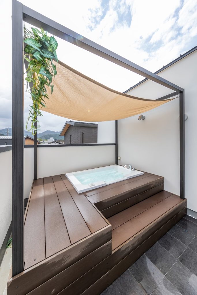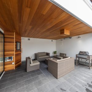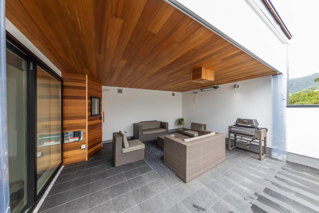 天候や季節に左右されない屋根付きのアウトドア・テラス。