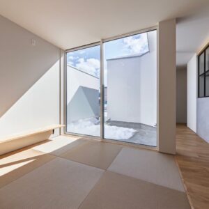外壁で囲まれた中庭は、