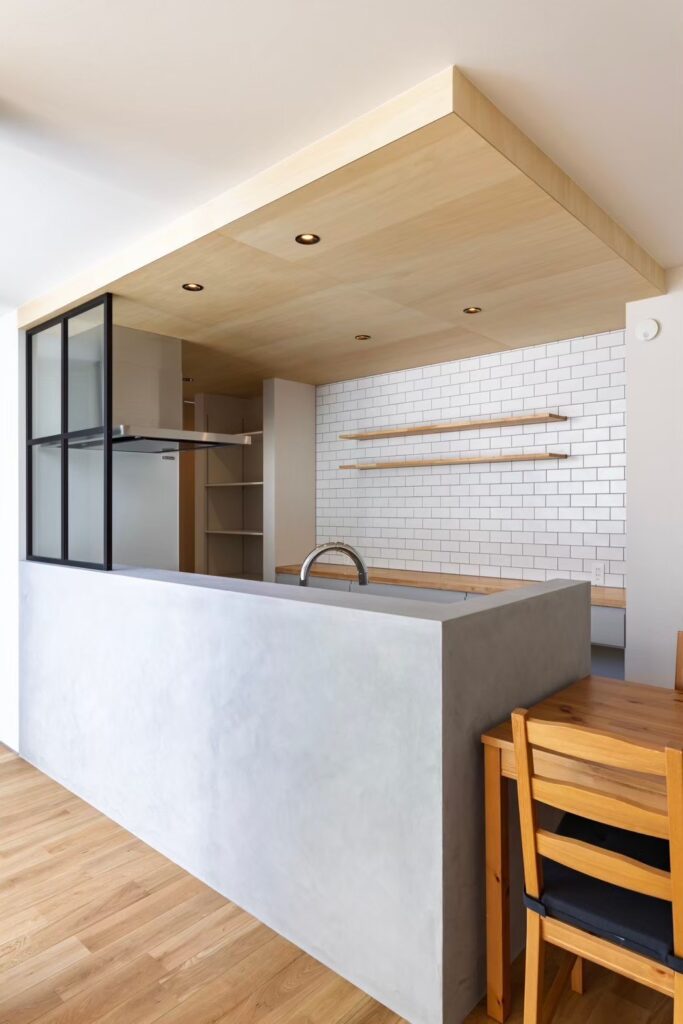 室内から見える部分は【塗り壁】を採用し