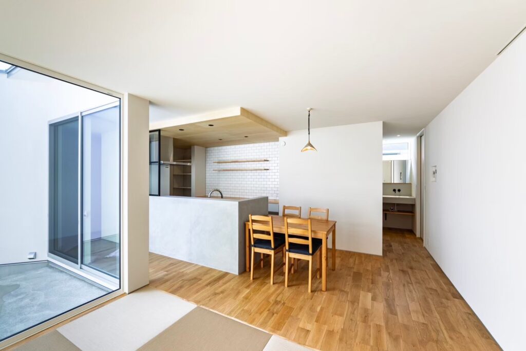 LDKのどこで過ごしていても中庭が見えるので、